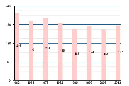 | 216 | 191 | 201 | 185 | 166 | 174 | 164 | 165 | 175 | 174 | 177 |
