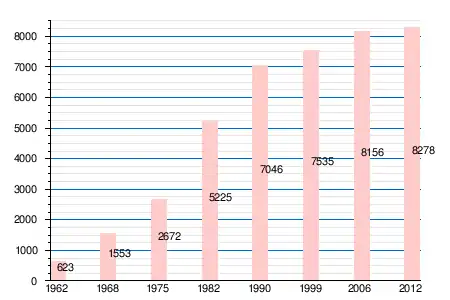 | 1962 | 1968 | 1975 | 1982 | 1990 | 1999 | 2006 | 2011 | 2012 |