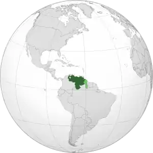 Венесуэ́ла, официальное название — Боливариа́нская Респу́блика Венесуэ́ла[7] (исп. República Bolivariana de Venezuela, МФА (исп.): [reˈpuβlika βoliβaˈɾjana ðe βeneˈswela]) — государство на севере Южной Америки.