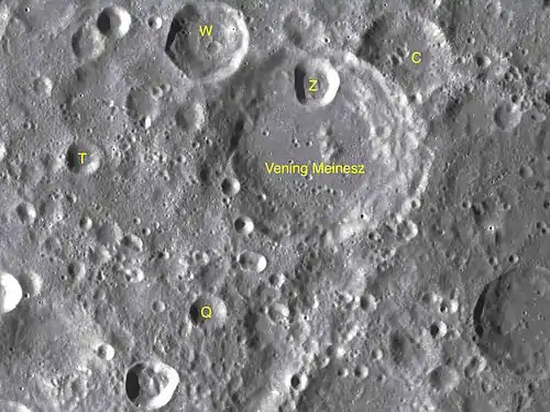 - Образование сателлитного кратера Венинг-Мейнес W относится к позднеимбрийскому периоду[1].