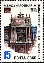 ![]() Марка СССР (1981) в честь международной филателистической выставки Вена-81 (ЦФА [АО «Марка»] № 5181): место проведения выставки — Дворец Хофбург | |