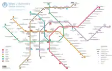 Сеть метро состоит из 5 линий общей длиной 78,5 километра со 104 станциями. Линии не имеют названий, а упоминаются по номерам с буквой U (от U-Bahn), от U1 до U6 (многочисленные проекты линии U5 до сих пор не реализованы). Кроме того, каждая линия имеет свой цвет. В Венском метрополитене действует линейный принцип движения поездов с 10 пересадочными станциями. Венский метрополитен обслуживается фирмой Wiener Linien GmbH & Co KG, принадлежащей Wiener Stadtwerke AG, 100 % акций которой находится во владении города Вена.