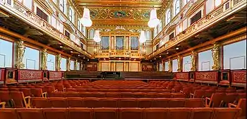 ![]() Золотой зал Общества друзей музыки в Вене, в котором базируется Венский филармонический оркестр | |
