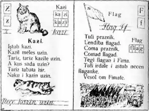 В 1930-е годы для записи вепсского языка использовалась письменность на латинской основе со следующим алфавитом[22]:
