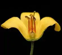 Цветки с пятираздельной чашечкой и пятираздельным венчиком жёлтой окраски; тычинок пять; завязь округлая или яйцевидная, столбик нитевидный, рыльце головчатое. Цветки собраны в метельчатые соцветия на верхушках стеблей. Время цветения — июнь — август. Плод — коробочка, время созревания плодов — август—сентябрь[5].