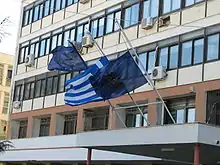 ![]() Флаг префектуры Козани, наряду с Европейским флагом и флагом Греции. |