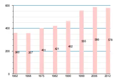 | 360 | 357 | 401 | 421 | 462 | 555 | 573 | 586 | 583 | 575 | 574 | 578 |