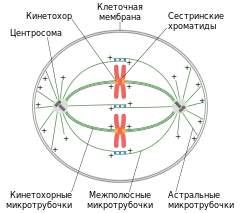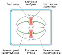 - Хромокинезины — белковые моторы семейства кинезин-4 и -10, локализованные на плечах хромосом, — связывают микротрубочки находящиеся вблизи хромосом и перемещаются в направлении плюс-конца микротрубочки. Тем самым плечо хромосомы оказывается связано с плюс-концом микротрубочки, а минус-конец оказывается дистанцирован от хромосомы.