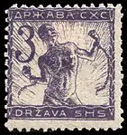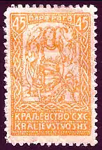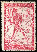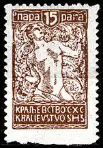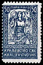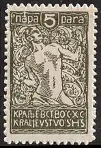 8 апреля 1919 года серия была переиздана без изменений, но с помощью высокой печати[9] и с добавлением марок более высоких номиналов и новых рисунков Ивана Вавпотича в стиле ар-нуво. Последние содержали новое название государства — «Краљевина СХС» / Kraljevina SHS[2]: