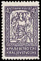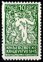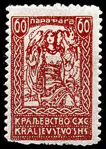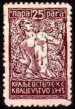 В июне 1920 года все перечисленные стандартные марки были переизданы ещё раз в новых денежных единицах — парах и динарах. Название государства изменено — «Краљевство СХС» / Kraljevstvo SHS. Низкие номиналы (до 1 динара включительно) получили зубцовку 13½ и были перерисованы Иваном Вавпотичем также в стиле ар-нуво. На марках номиналов 2, 4, 6 и 10 динар (в отличие от номинала 1 динар) — ошибка в надписи кириллицей: в слове «ДNНАРА» буква «И» дана зеркально. Номиналы 2, 6 и 10 динаров были изданы на бумаге с гильошированием, 1 и 4 динара вышли уменьшенного размера (21 × 30½ мм вместо нормального 22 × 32½ мм). Встречаются подделки марки номиналом 20 пар (Sc #3L45) из-за её относительной редкости[2]. Известны диагональные бисекты 1920—1921 годов марки номиналом 10 пар (применялись в Любляне, Птуе, Мариборе и др.)[5].