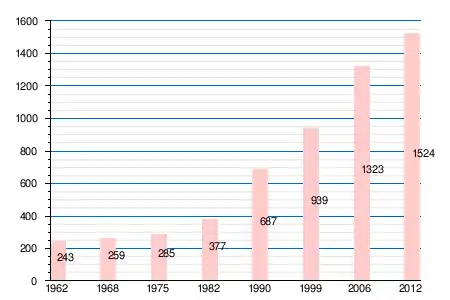 | 1962 | 1968 | 1975 | 1982 | 1990 | 1999 | 2004 | 2006 | 2009 | 2011 | 2012 |