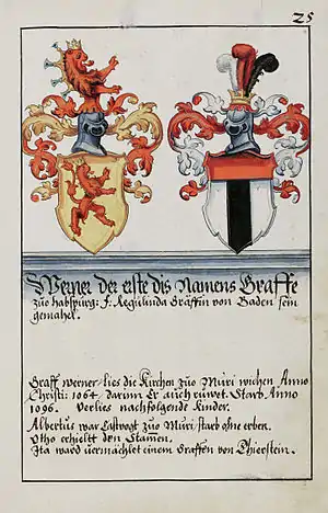 - Wappenbuch des Hans Ulrich Fisch. Staatsarchiv Aargau, V/4-1985/0001:25r Werner der erste dis Namens. — Aarau, 1622. — P. 25.