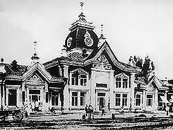 Театральное искусство начало развиваться в городе Верном через несколько лет после основания военного укрепления. 21 ноября 1872 года была представлена первая городская постановка — пьеса А. Н. Островского «Не в свои сани не садись», которая была поставлена Обществом любителей драматического искусства. Пьесы в Верном шли в Общественном, Военном или Коммерческом собраниях[8].