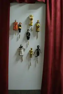 В отличие от «театра Петрушки», управление куклами происходит снизу (Петрушка — перчаточная кукла)[2].