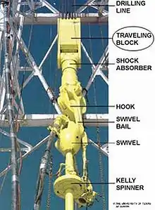 Вертлю́г (англ. Swivel) — важный элемент буровой установки, обеспечивающий свободное вращение буровой колонны с одновременным подводом промывочной жидкости в неё. Вертлюг устанавливается между талевой системой и буровым инструментом и предотвращает скручивание каната. Также вертлюг поддерживает вес бурильной колонны.[1]