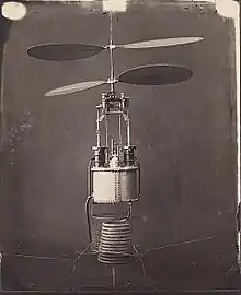 В 1853—1860 годах во Франции Г.Понтон д’Амекур разработал проект летательной машины — «аэронефа». Аэронеф должен был подниматься вверх с помощью двух соосных винтов, приводимых в движение паровой машиной.