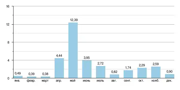 | Расход воды | 2,76 м³/с (82 км от устья) |