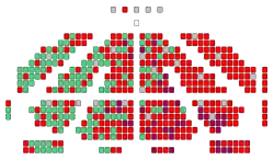 ![]() Распределение депутатов по партиям в зале проведения заседаний | |
