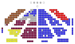 ![]() Распределение депутатов по партиям в зале проведения заседаний | |