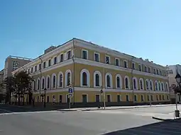 Старое здание располагается по улице Кремлёвской (бывш. Воскресенская, Ленина), памятник истории федерального значения. Построено в 1825 году в два этажа из кирпича в стиле классицизма архитектором А. К. Шмидтом для казанского вице-губернатора А. Я. Жмакина, в 1830-х годах куплено под квартиру военного губернатора. В этом доме в августе 1837 года провела вечер группа декабристов (А. И. Вегелин, В. Н. Лихарев, Н. И. Лорер, М. А. Назимов, М. М. Нарышкин, А. И. Одоевский, А. Е. Розен, А. И. Черкасов), отправленная из сибирской ссылки на Кавказ в действующую армию. В 1872—1874 годах перестроено под помещение Казанского окружного суда и судебной палаты архитектором Л. К. Хрщоновичем; в последующие годы сильно перестраивалось, в частности, был надстроен третий этаж. Ныне там располагается приемная президента России в Татарстане[32][33][34][35][36][37].