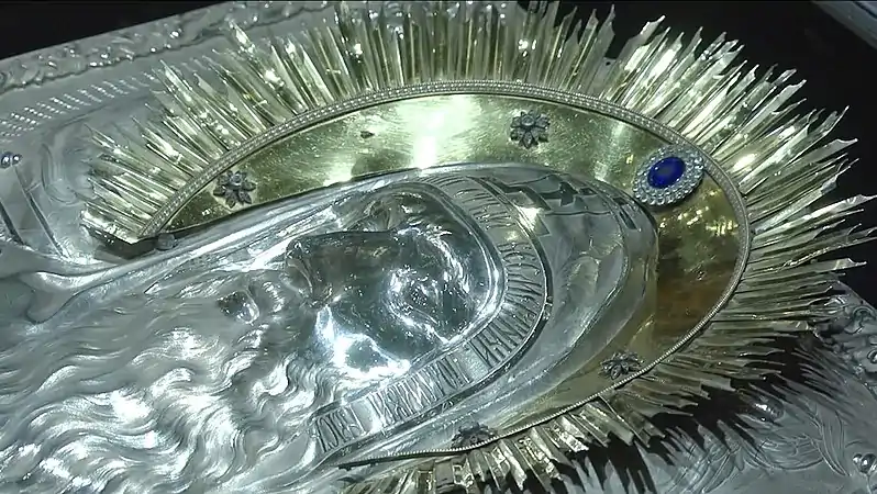22 декабря 1860 года (3 января 1861) выполнил ризу для иконы, которая была перенесена в собор 5 (17) марта 1859 года. Риза выполнена из золота, весом 30 фунтов 39 золотников, с украшением бриллиантами, на пожертвования. Икона имеет размеры — 1 аршин 2 вершка длины, 14 вершков ширины. Внизу иконы имеется надпись[16]: