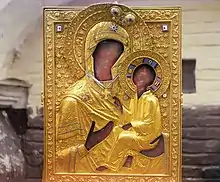 С одной стороны иконы изображена Богоматерь с младенцем, а с другой стороны изображён Георгий Победоносец поражающий змея. 10 (22) октября 1864 года список был доставлен в монастырь на теплоходе, который прошел из Санкт-Петербурга, с остановкой в Одессе, через Балтийское, Средиземное, Мраморное, Чёрное моря. По описи монастыря 1940 года стоимость иконы составила 140.000 рублей[72].