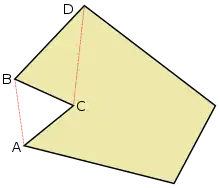 В многоугольнике вершина называется «выпуклой», если внутренний угол многоугольника меньше π радиан (180° — два прямых угла). В противном случае вершина называется «вогнутой».