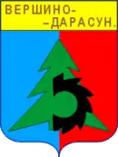 Герб посёлка Вершино-Дарасунского представляет собой щит с изображением: «В голубом поле зелёная ель и часть чёрного лесопильного ножа». По статье А.А. Жулая «Современные гербы Забайкалья» («Вестник геральдиста» № 1).[30]