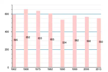 Население коммуны в 2011 году составляло 563 человека[6], в 2012 году — 556 человек[7], а в 2013-м — 550 человек[5].