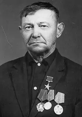 - Герой Социалистического Труда (1948, за исключительные заслуги перед государством, выразившиеся в получении в 1947 году урожая ржи 30,4 центнеров с гектара на площади 42,1 га);
