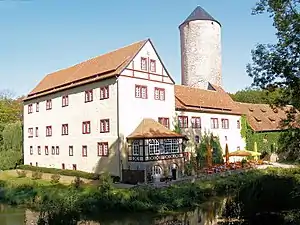 В западной части комплекса находится крупное здание прямоугольной формы, построенное в более поздний период. Это главная резиденция с небольшим внутренним двором. Основные строительные работы по реконструкции резиденции проводились в эпоху Возрождения, что особенно заметно по форме окон и порталов. В замковой капелле хорошо сохранился деревянный алтарь с кафедрой епископа. На стене сохранилась надпись «1681 год».