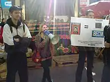 Украинские активисты кампании «Не покупай российское!» после Евромайдана проводили одиночные акции возле пунктов раздачи газеты «Вести» в Киеве.
