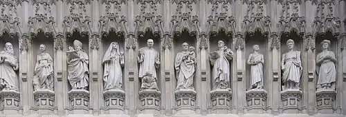 В 1998 году на фасаде над портиком западного входа были установлены статуи мучеников XX века (слева направо)