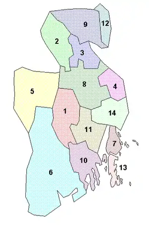 | Включает | 14 коммуны | ||||