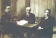 Руководство Вологодской губернии (слева направо): председатель ревтрибунала К. Н. Бедняков, председатель губревкома М. К. Ветошкин, председатель губчека П. Н. Александров. Фотография 1918 года
