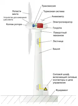 - Ротор; лопасти; ветротурбина; хвост, ориентирующий ротор против ветра