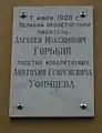 Мемориальная доска Горькому на стене Ветроэлектростанции Уфимцева. "7 июля 1928 года великий пролетарский писатель Алексей Максимович Горький посетил изобретателя Анатолия Георгиевича Уфимцева"