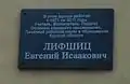 Мемориальная доска Лившицу Е.И. на стене Ветроэлектростанции Уфимцева. "В этом здании работал с 1971 по 2011 годы учитель, воспитатель, педагог, Отличник народного просвещения, Почетный работник науки и образования Курской области Лифшиц Евгений Исаакович".