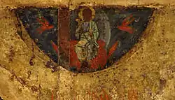 - фреска «Крещение Господне» в церкви Панагия Халкеон (Салоники, 1028 год). В руках Ветхого денми находится свиток с цитатой из Евангелия от Матфея — «Сей ᾿есть Сын Мой возлю́бленный» (Мф. 3:17).