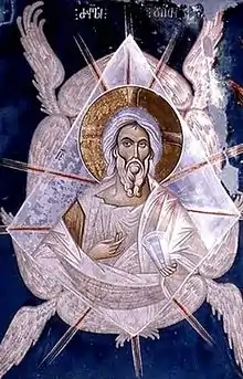 То же мнение высказывает Епифаний Кипрский в своём труде «На восемьдесят ересей Панарий, или ковчег», глава 14: «Сей Отец и Сын и Святый Дух удостоивал от века являться святым Своим в видениях, насколько каждый мог вмещать по сообщенному ему от Бога дарованию, какое даровал Он каждому из удостоиваемых, как например созерцать Отца, насколько каждый мог слышать глас Его и вмещать. Так устами Исаии Он говорил: се уразумеет Отрок Мой возлюбленный (Ис. 52, 13). Это глас Отца. Так и Даниил видел Ветхаго денми (Дан. 7, 9). Это видение Отца. Так и еще у пророка сказано: Аз видения умножих, и в руках пророческих уподобихся (Ос. 12, 10). Это глас Сына. А у Иезекииля сказано: и взя мя Дух и вывел меня на поле (Иез. 3, 12. 22). Это относится к Святому Духу».