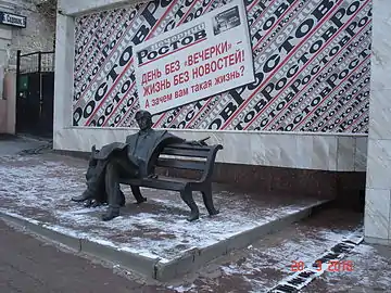 Скульптура возле редакции, вид спереди