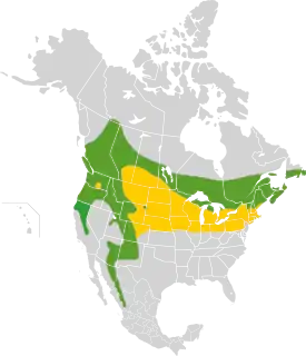 Миграция птиц переменная, в некоторые зимы они могут залетать достаточно далеко на юг, в южные штаты США.