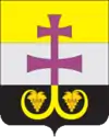 - Золотые виноградные гроздья на концах креста символизируют плодородие, процветание и аллегорически указывают на основу экономики района — сельское хозяйство.