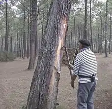 Демонстрация подсочки для туристов (Ланды, 2002)