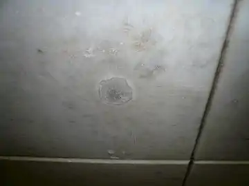 Потолок станции «Парк культуры», повреждённый поражающими элементами бомбы