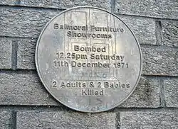 11 декабря 1971 года на Шенкилл-Роуд собралось много покупателей, особенно около магазина «Моффат», располагавшегося в здании Викторианской эпохи принадлежавшего компании Balmoral Furniture Company[2]. Ранее оно служило кинотеатром и называлось «Кинотеатр Малыша Джо» (англ. Wee Joe's Picture House) в 1930-е годы, владельцем которого был Джо «Малыш Шенк» Маккиббен, также владевший продовольственным магазином. Для того, чтобы достать билет в кино, порой достаточно было обменять пустую банку из-под варенья в продовольственном магазине Джо и получить билет в кино[3].