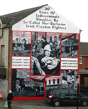 Оригинальный текст (англ.)[показатьскрыть]Women were crying. Men were trying to dig out the rubble. Other men were hitting the walls. One person was crying beside you and the next person was shouting 'Bastards' and things like that. I didn't actually see the babies' bodies as they had them wrapped in sheets, but the blood was just coming right through them. They were just like lumps of meat, you know, small lumps of meat. All these emotions were going through you and you wanted to help. There were people shouting at the back, "Let's get something done about this". To be perfectly honest with you, I just stood there and cried, just totally and utterly numb. It wasn't until I got back home that I realised, this isn't a game. There's a war going on here. These people are trying to do us all in. They're trying to kill us all and they don't care who we are or what age we are. Because we're Protestants, they are going to kill us so we're going to have to do something here.