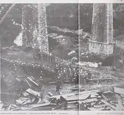 После того как заряды были установлены и предохранители зажжены, первый взрыв состоялся в 01:30, сильно повредив центральную опору и разрушив 2 пролёта. После этого сапёры установили новые заряды на вторую опору и оставшиеся пролёты, которые были взорваны в 02:21.