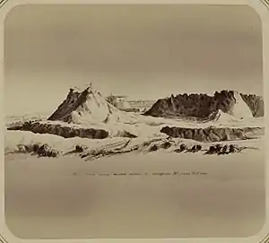 ![]() Вид крепости Ак-Мечеть с левого берега реки Сыр-Дарьи. (Русский художественный листок, № 8, 1856, худ. Тимм В.Ф.) | |||