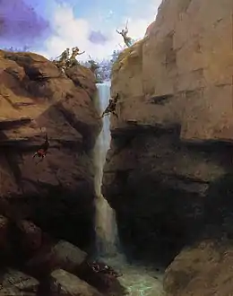 ![]() Айвазовский И. К.: «Стычка ширванцев с мюридами на Гунибе» (1869) |